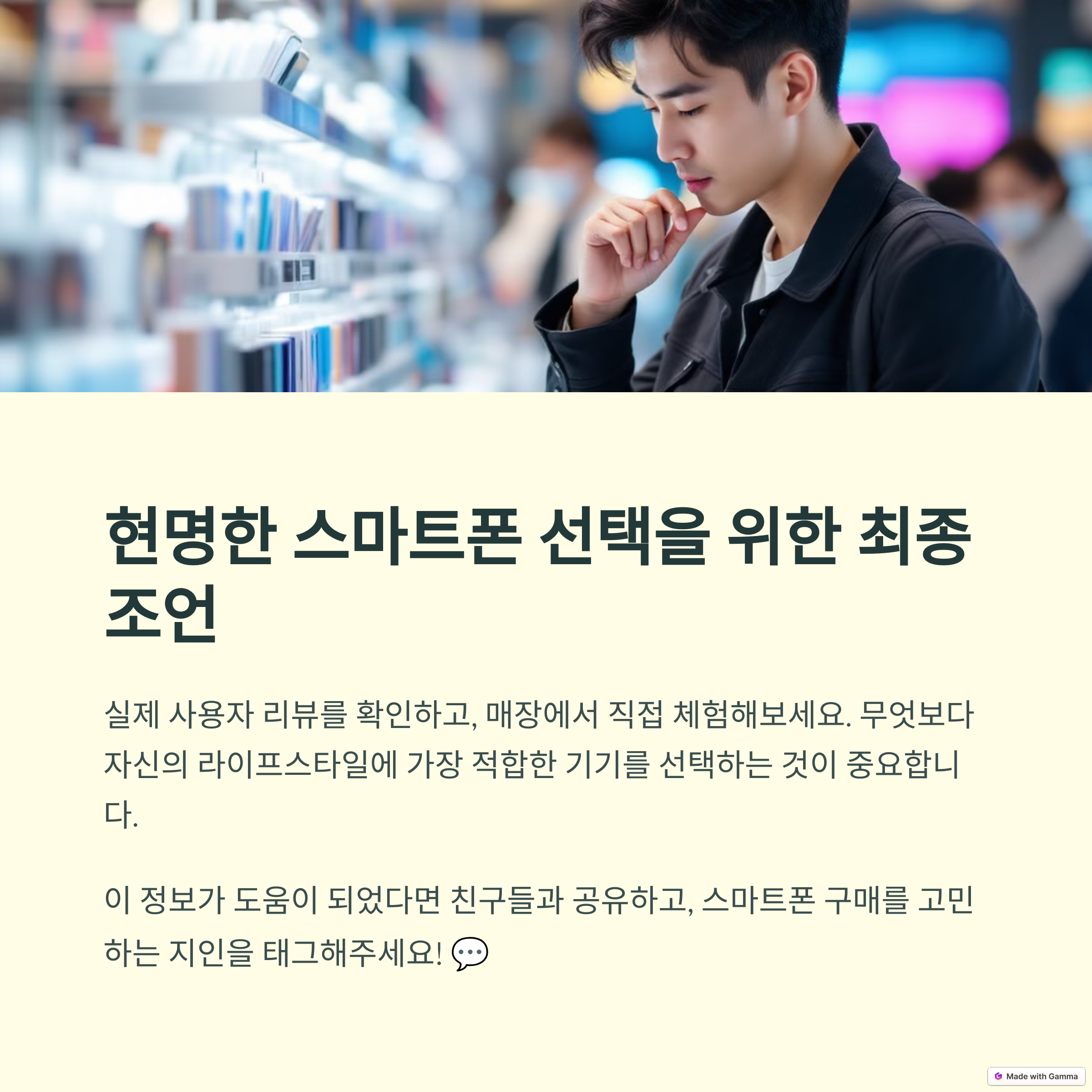 여러분이 선택하신 스마트폰과 그 이유는 무엇인가요? 어떤 기능이 가장 중요했는지, 사용하면서 느낀 장단점도 공유해주세요. 다양한 의견이 모이면 더욱 풍부한 정보의 장이 될 수 있습니다!