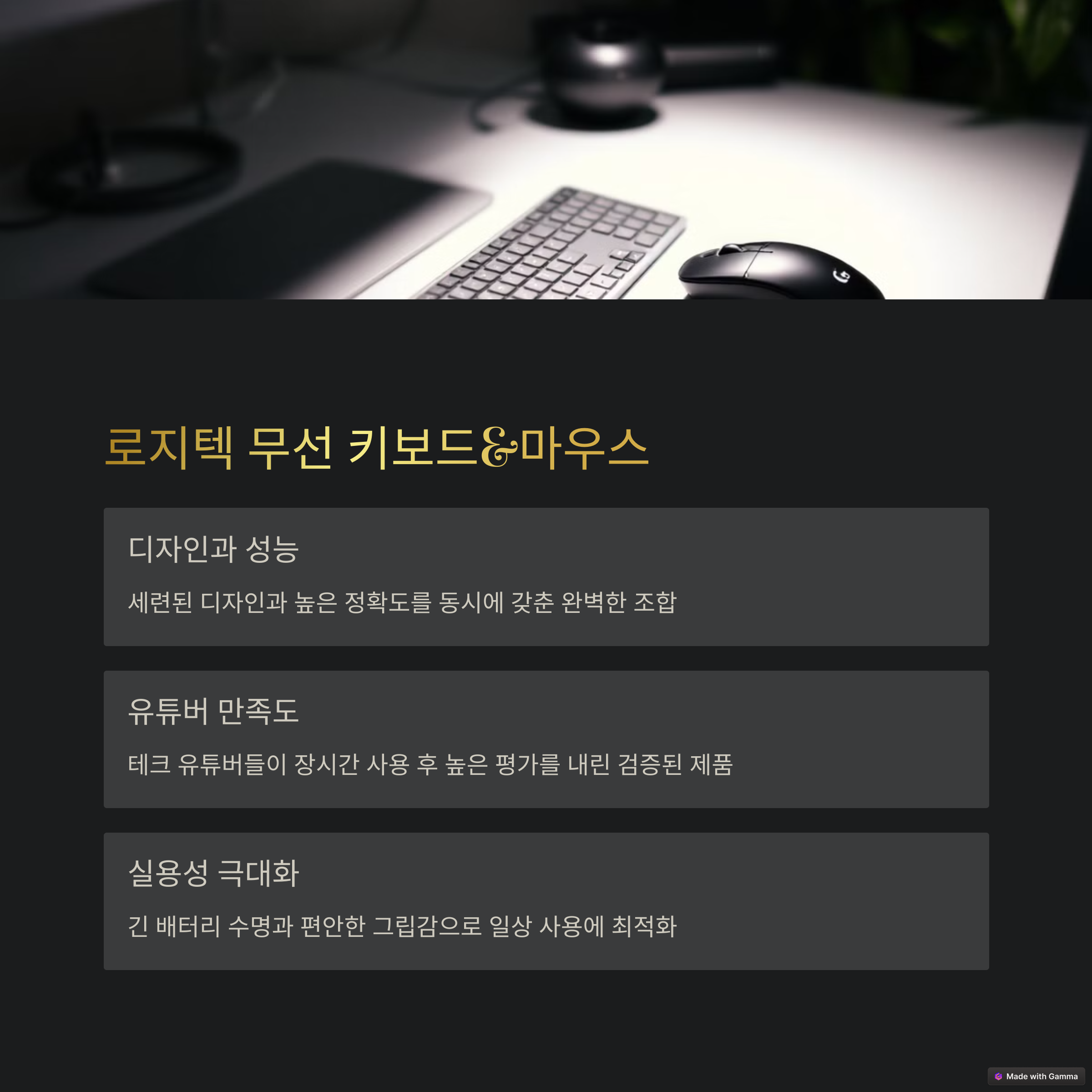 많은 테크 유튜버들이 입을 모아 추천하는 첫 번째 꿀템은 바로 로지텍(Logitech)의 무선 키보드 & 마우스 세트입니다. 깔끔한 디자인, 빠른 반응 속도, 멀티 디바이스 연결 기능까지 탁월해 생산성은 물론 감성적인 데스크 셋업에도 잘 어울립니다. 특히 블루투스 기반 제품은 휴대성이 뛰어나 재택근무, 카페 작업 등 다양한 환경에서 유용하며, 배터리 지속력도 긴 편이라 실용성 면에서도 높은 평가를 받고 있습니다.