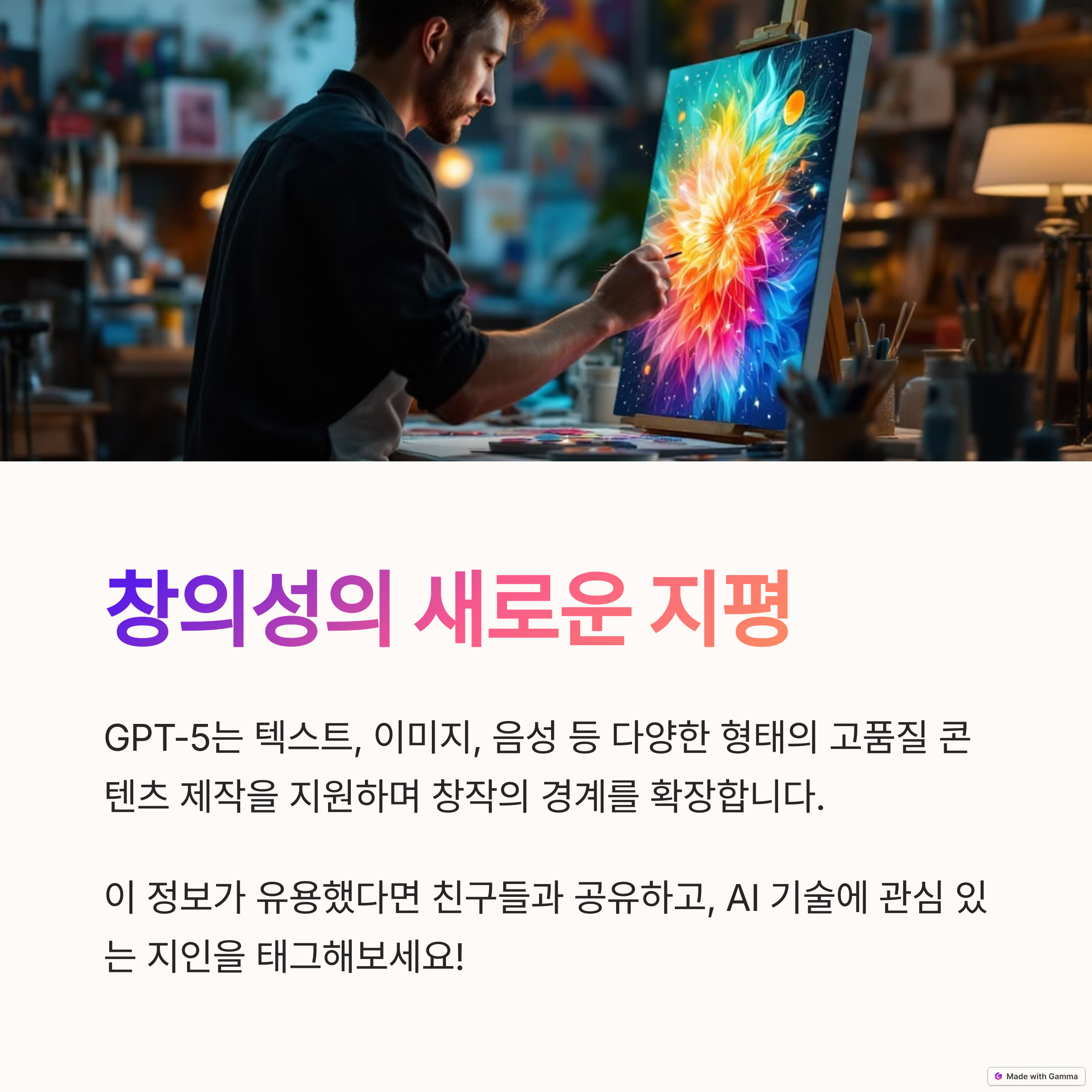 GPT-5는 단순한 AI 모델을 넘어 사용자 맞춤형 조력자로 진화하고 있습니다. 텍스트를 넘어 이미지, 음성, 문서까지 다루며 일상과 업무에서 활용 가능성이 더욱 커졌습니다. 향후 AI는 단순 응답기가 아닌, 진짜 파트너이자 보조자로 자리잡게 될 것입니다. 변화는 이미 시작되었고, 지금이 바로 GPT-5와 함께 디지털 생산성을 확장할 최고의 타이밍입니다.