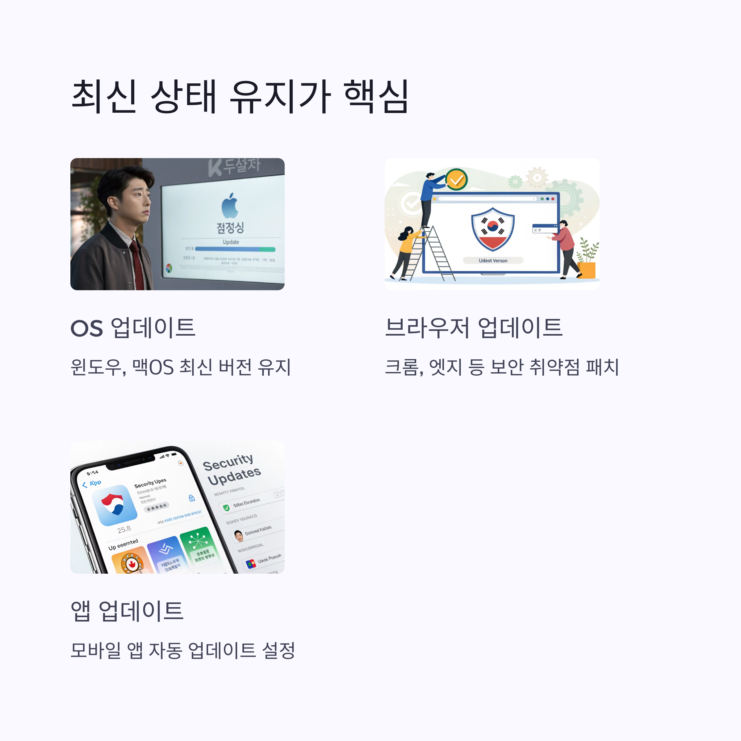 | 필수 실천 | 강력한 비밀번호, 2단계 인증, 백신 설치 등 기본 수칙 |