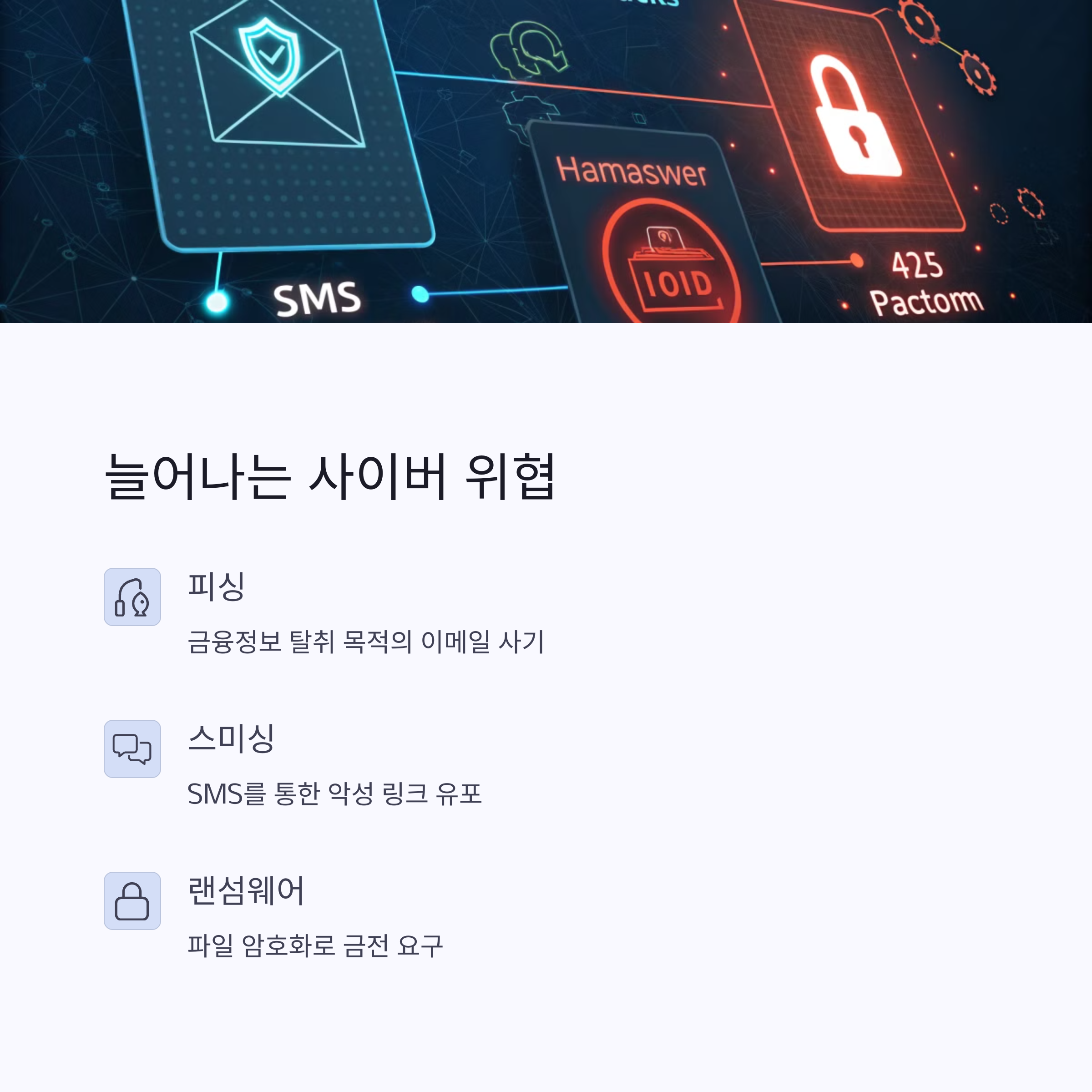 | 보안 위협 | 피싱, 스미싱, 랜섬웨어 등 일상 속 위험 증가 |